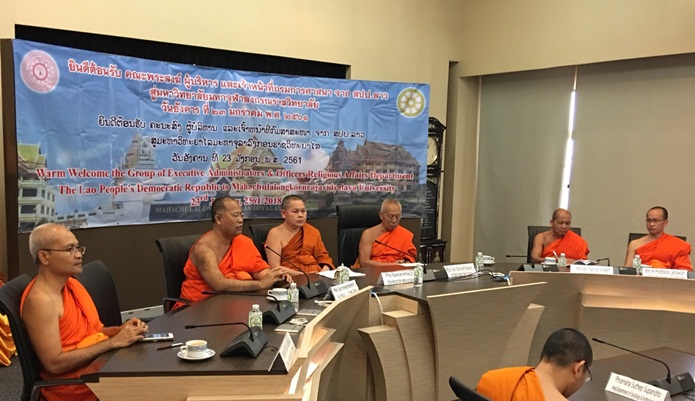เมื่อวันที่ 23 มกราคม 2561ที่ผ่านมา ที่สำนักงานอธิการบดี มหาวิทยาลัยมหาจุฬาลงกรณราชวิทยาลัย(มจร) อำเภอวังน้อย จังหวัดพระนครศรีอยุธยา พระพรหมบัณฑิต,ศ.ดร. กรรมการมหาเถรสมาคม อธิการบดี มจร  ได้มอบหมายให้พระราชวรเมธี,ดร. รองอธิการบดีฝ่ายบริหาร มจร พระโสภณวชิราภรณ์ รองอธิการบดีฝ่ายกิจการต่างประเทศ มจร พร้อมคณะผู้บริหาร ให้การต้อนรับ ดร.พระมหาเวท มะเสไน รองประธานองค์การศาสนาสัมพันธ์ลาว (อพส.) และนายคะนองลิต สีสมบูน  อธิบดีกรมการศาสนา ประเทศสาธารณรัฐประชาธิปไตยประชาชนลาว (สปป.ลาว) และคณะ เข้าเยี่ยมชมกิจการงานจัดการศึกษาของ มจร เพื่อเชื่อมสัมพันธไมตรีด้านพระพุทธศาสนาระหว่างไทย-สปป.ลาว และส่งเสริมความร่วมมือด้านวิชาการของคณะสงฆ์