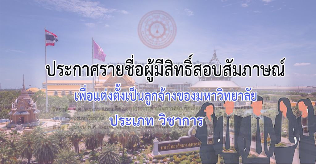 ตามที่มหาวิทยาลัยมหาจุฬาลงกรณราชวิทยาลัย ประกาศรับสมัครสอบคัดเลือกบุคคลเพื่อแต่งตั้งเป็นลูกจ้างของมหาวิทยาลัย โดยกลุ่มงานบริหารงานบุคคลได้ทดสอบความรู้เกี่ยวกับมหาวิทยาลัย และความรู้ความสามารถเฉพาะตำแหน่ง เป็นที่เรียบร้อย จึงขอประกาศรายชื่อผู้มีสิทธิเข้ารับสอบสัมภาษณ์ ดังต่อไปนี้