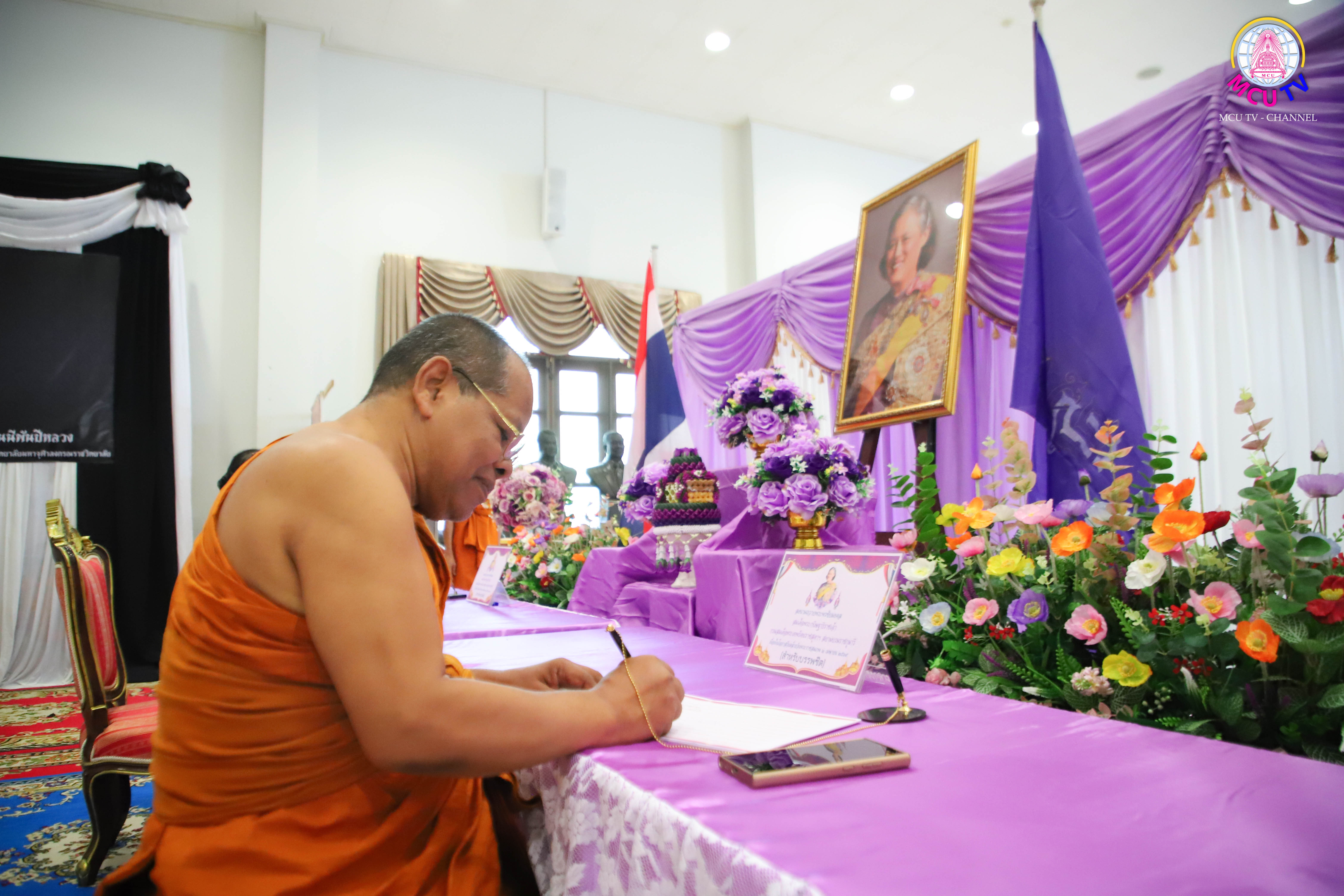 ทั้งนี้ ก่อนเริ่มพิธีการในเวลา ๑๒.๐๐ น. คณะผู้บริหาร คณาจารย์ เจ้าหน้าที่ และนิสิตทุกชั้นปี ได้ร่วมกันลงนามถวายพระพรหน้าพระฉายาลักษณ์ ณ บริเวณชั้น ๒ ของอาคารฯ โดยการจัดงานในครั้งนี้มี พระครูสุตรัตนบัณฑิต, ดร. ผู้อำนวยการวิทยาลัยพระธรรมทูต และ รศ.ดร.เกียรติศักดิ์ สุขเหลือง ผู้ช่วยอธิการบดีฝ่ายวิชาการ เป็นศาสนพิธีกรดำเนินรายการจนเสร็จสิ้นพิธีและร่วมบันทึกภาพหมู่เป็นที่ระลึก
