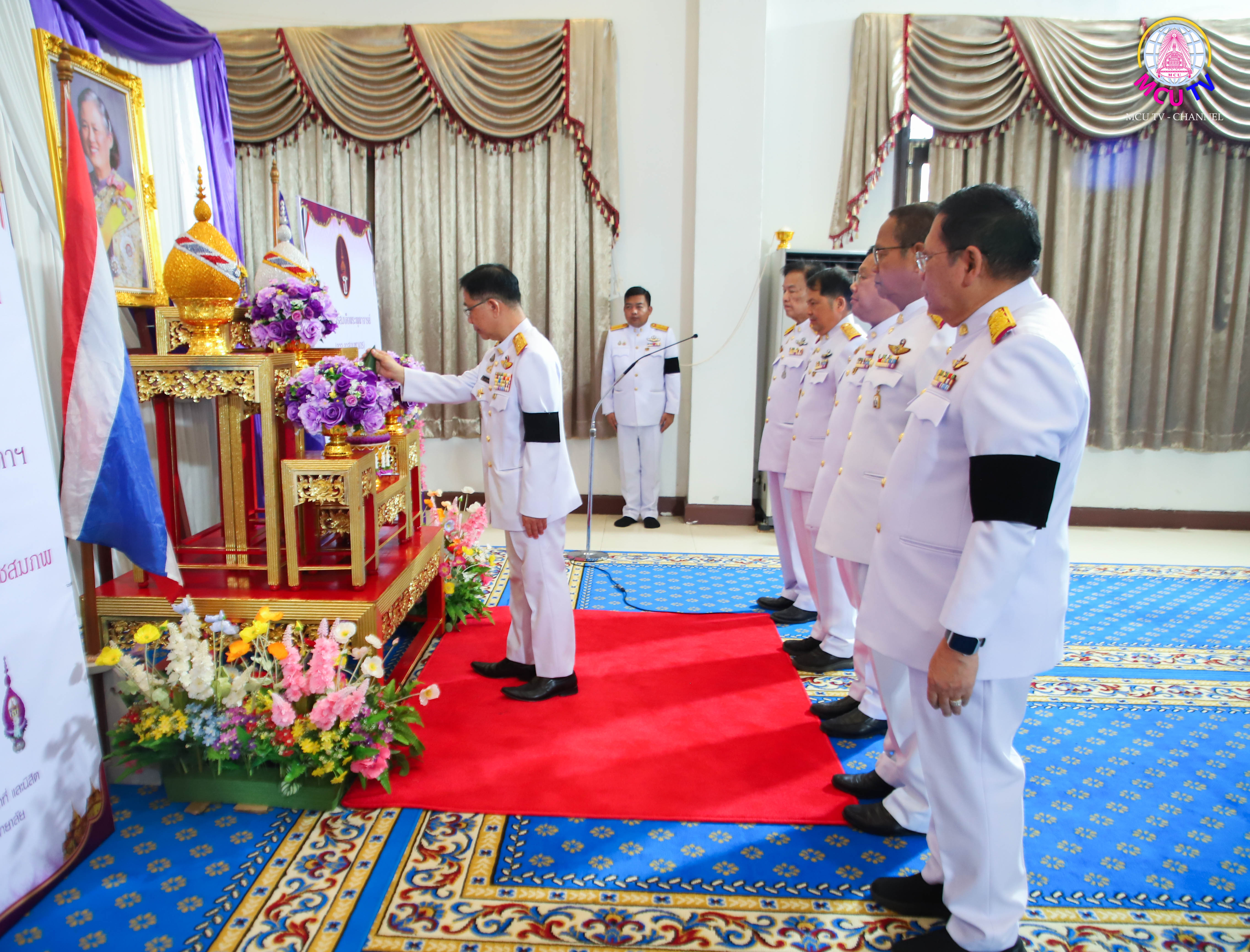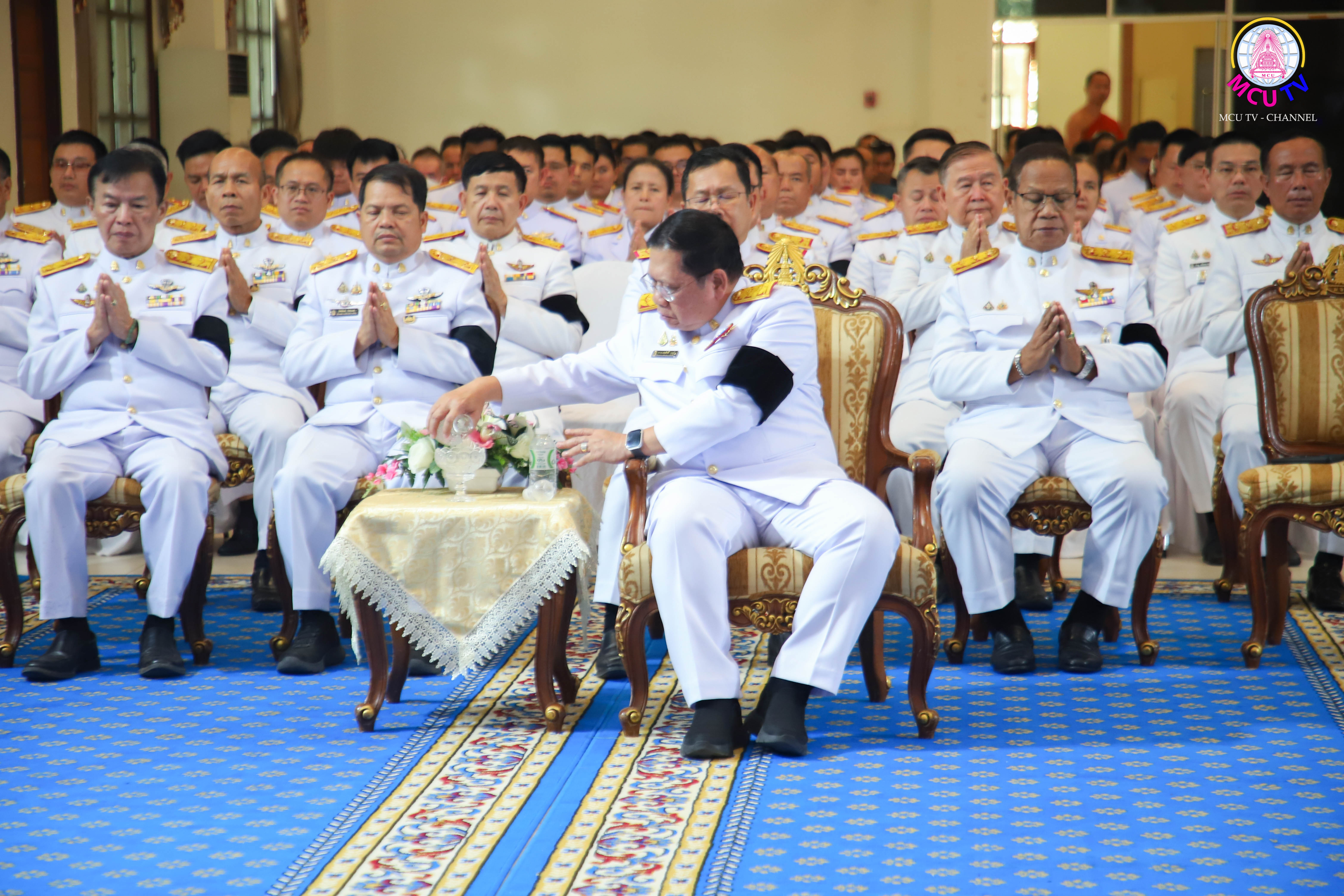 ภายในพิธีได้รับความเมตตาจาก พระพรหมวัชรธีราจารย์, ศ.ดร. อธิการบดีมหาวิทยาลัยมหาจุฬาลงกรณราชวิทยาลัย เป็นประธานฝ่ายสงฆ์ นำจุดธูปเทียนบูชาพระรัตนตรัย ให้ศีล นำเจริญพระพุทธมนต์ และกล่าวสัมโมทนียกถา โดยมี รองศาสตราจารย์ ดร.สุรพล สุยะพรหม รองอธิการบดีฝ่ายกิจการทั่วไป เป็นผู้แทนเปิดกรวยกระทงดอกไม้ธูปเทียนแพหน้าพระฉายาลักษณ์ และกล่าวคำถวายราชสดุดีเฉลิมพระเกียรติฯ