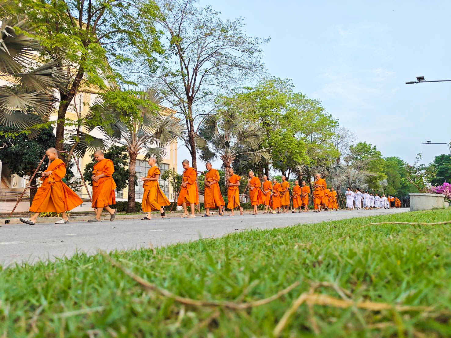พลังแห่งความเพียร! คณะพระอาจารย์ สามเณร และเนกขัมมะจาริณี ภาคฤดูร้อน รุ่นที่ ๑๓ มจร เดินจงกรมยามเช้าเจริญสติ ถวายพระราชกุศลแด่สมเด็จพระนางเจ้าสิริกิติ์ พระบรมราชินีนาถ พระบรมราชชนนีพันปีหลวง